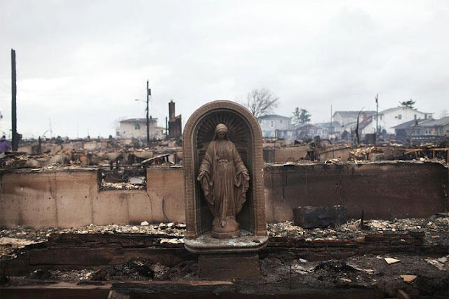 Una imagen de la Virgen María fue todo lo que quedó de una casa que fue destruida durante el huracán Sandy a su paso por Nueva York.